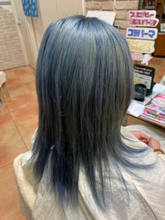 そして、わざと立体感を出すためにブリーチを4回の所と2回の所をつくりペールブルーを塗布!!