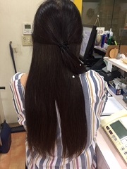 バームを付けて仕上げた方は、パサつきが減りツヤ感がでています。